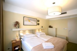 Obývací pokoj a dvě ložnice, samostatná koupelna s vanou a sprchovým koutem, samostatné WC, fén, lednice (nápoje na přivítání), varná konvice, bezpečnostní schránky, telefon, sat. TV s rádiem, WiFi, klimatizace, župany, některá APT s balkonem.